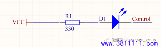说了这么多好像还是没说到正点上,那么该如何使用它呢? 刚才我们知道了它的特性,现在开始的使用它。在我们的弱电系统中,电源以5V或者3.3V居多,这里以5V电源为例。通过上面的参数可以看出,当5V电源直接加在LED灯两端时,会产生很大的正向连续电流,我们又知,当正向连续电流超过25mA时,LED灯就会损坏。此时就需要串入一个电阻进行限流,分担一部分电流到电阻上,保证LED灯正常使用而不损坏,这个电阻就是传说中的“限流电阻”,因此就出现了我们今天真正要说的电路。 这就是最经典、最常用的LED灯电路。 那么现在问题又来了,在上面这个电路中,电源确定了5V,LED灯也确定了,那么这个限流电阻我该选多大的合适呢?这个时候就需要根据上面说到的两个参数:IF和UF来确定电阻值的大小。其计算如下: 电阻两端的电压 :5V-2.1V≤UR≤5V-1.6V; 电阻大小:(5V-2.1V)/25mA≤R≤(5V-1.6V)/0.01mA; 即可得:116Ω≤R≤340kΩ。 所以这里的电阻只要选取这个范围之内的电阻均可以。只是说电阻值越小,流过的电流越大,LED灯越亮;电阻值越大,流过的电流越小,LED灯越暗。通常在实际的应用中,LED灯导通电压取1.7V,正向连续电流取10mA。由此参数可简单得到限流电阻的值。 这是LED灯在电源指示灯中的应用。如果将LED灯用于板级运行指示灯时,又该如何来做呢?其实很简单。 电路如下 这里我们只需在Control端给高低电平即可。当给高电平时,LED灯不导通,此时LED灯不亮,过一段时间再给低电平,LED灯导通,此时LED灯亮。反复此操作,便可看到LED灯的状态:亮-灭-亮-灭。。。 LED灯的闪烁频率取决于高电平和低电平所持续的时间。 至此,LED灯的使用已说完,你会使用它了吗? |