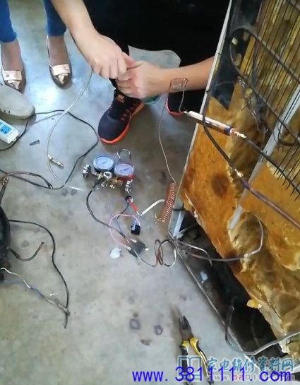 那么如何冲注合适呢?我一般做法是,抽空后加注气体大约和罐内平衡后关闭阀门,启动冰箱,运转冰箱冷冻室能够全部降温到零度以下后,停机。约三分钟后,再次开机。大约二十到六十秒之间,压机回气管会出现一次结霜过程,这个结霜过程会持续大约一分钟长,然后化掉。并且以后不再结霜,这为冲注合适。如果这段时间,不出现结霜过程,冲注量为少,需再添加制冷剂。如果结霜不化则为充注过多,需放掉部分制冷剂。