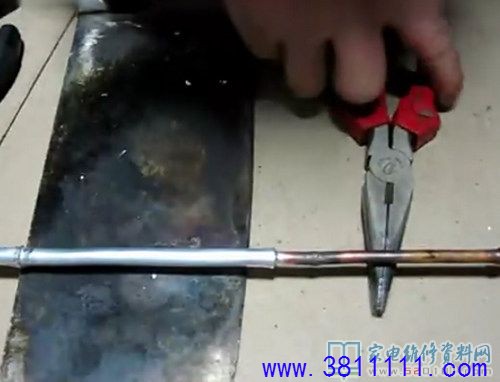 钎接接头的焊前清理决定着焊接质量的优劣,最佳的毛细管作用发生在清洁的钎焊工件上. 对表面有油污的工件, 应该用有机溶剂或有机溶剂蒸汽清洗(如丙酮),焊接部位20mm范围内的氧化层应用金相砂纸或什锦锉彻底清理,尤其是经过扩口的承口内表面,清理一定要细心、彻底。四、焊接