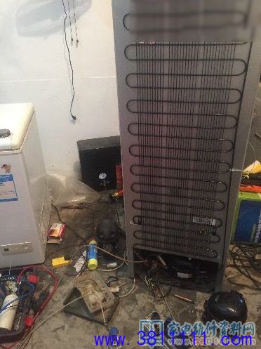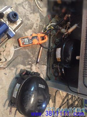 | 客户拉来一台海尔三门冰箱,插电压缩机能走不制冷,第一反应就是漏,拔掉电源割开工艺口有气体喷出,心想不应该呀,随后焊开高压管,试机出气口无力,原压机nx1111y,手头正好有个emz40clp压机,询问老师后得知可以代换。系统保压后发现低压不漏,高压有点变化,可能跟太阳直射有点关系吧,安全起见挂背板,用r22清洗管路后抽真空加r600a至回气管微凉结露后,冷冻室温度到-14度后冷凝器不热压力表负压到底,冰堵了,参考老师的用电磁炉炖压缩机大法,封死工艺口和回气口,让压缩机自排空,由于不想再拆出压机期间用电吹风加热压机运行2小时,再次用r22清洗管路,过滤器抽出毛细管后再插入毛细管感觉残留的焊条会堵住毛细管就换了一个过滤器。最后抽真空加r600a,运行期间过滤器常温压缩机微烫,三档停机,结束维修。