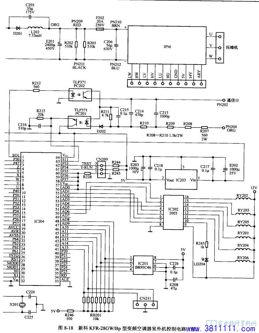 二、新科KFR-28GW/Bp型变频空调器室内机控制电路(续)