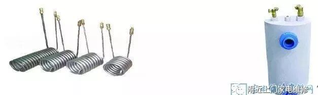 (4)沉浸式盘管冷凝器 由水箱和紫铜管组成.紫铜管绕成盘管形状.结构简单.结水垢后不容易清洗.时间久,换热效率差.紫铜管抗腐蚀性差,有可能导致盘管泄漏的可能。