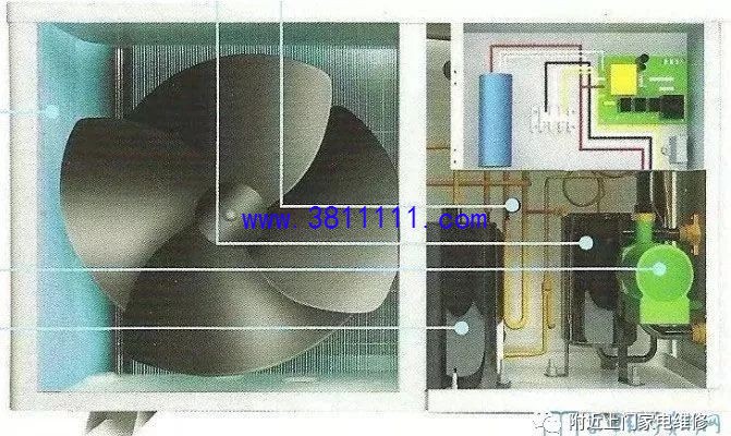 四、空气源热泵部件功能 1、压缩机: 它的作用是将蒸发器低温低压制冷剂蒸汽吸入,并压缩到高温高压的过热制冷剂蒸汽,然后排到冷凝器。
