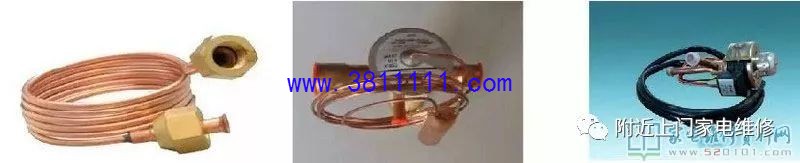 4. 节流部件 分类:A 毛细管B 热力膨胀阀C 电子膨胀阀 作用:把从冷凝器出来的高温高压制冷剂液体节流降压后变成低温低压的液体,然后排入到蒸发器。