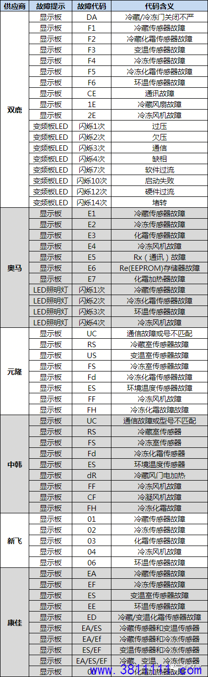 自主产品冰箱故障代码汇总: