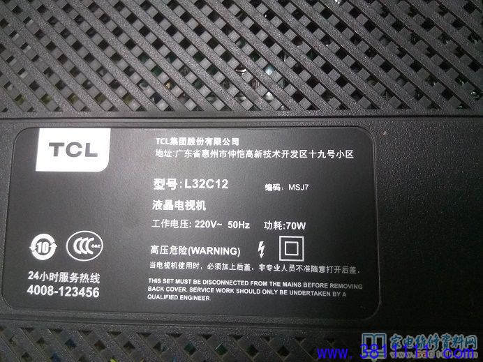 接修一台TCL L32C12液晶电视,故障表现是待机红灯亮,用遥控器开机刚刚看到开机画面就回到待机状态。根据现象怀疑是电源带负载能力差,拆开果然看到4只电容(C1081 1000UF/25V;C10391000UF/25V;C1023220UF/16V;C1021470UF/16V)鼓包了,立即更换4只电容,开机图像声音都出来啦,试机半天一切正常。